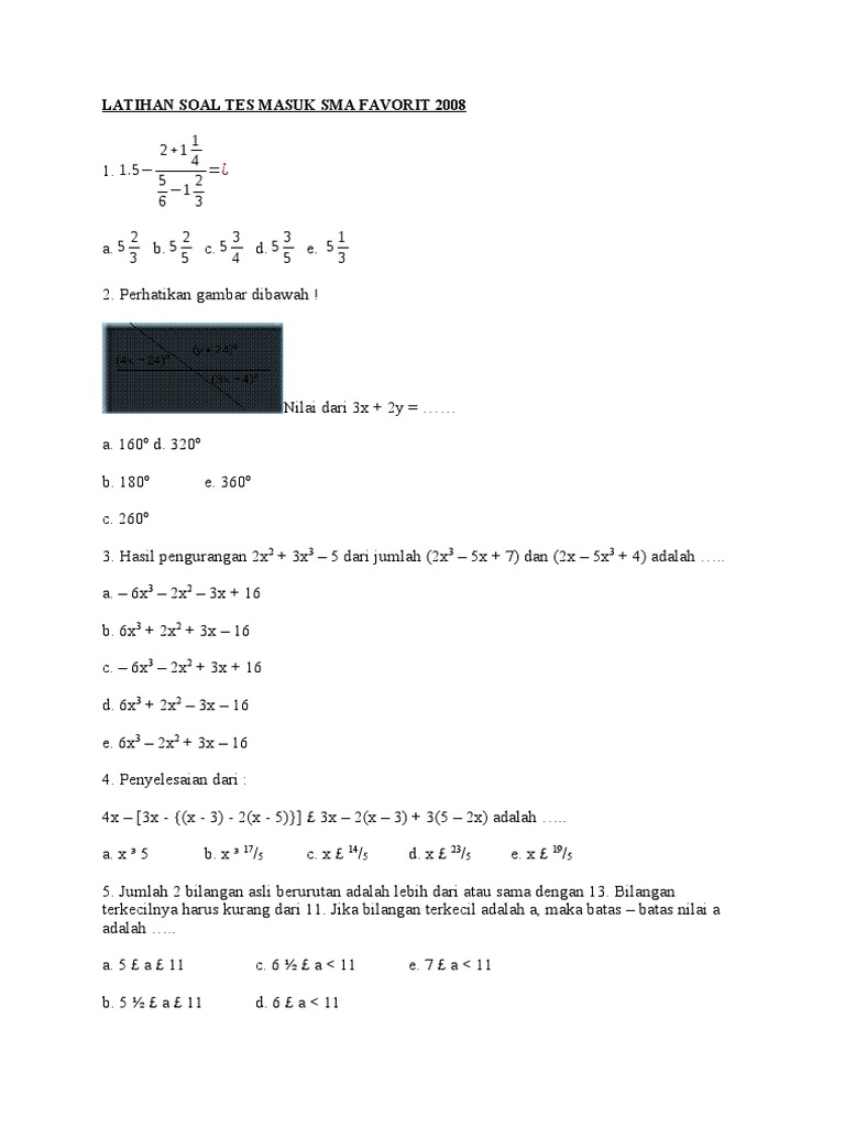 Soal Soal Tes Masuk Sma Plus Soposurung Jawabanku Id from imgv2-2-f.scribdassets.com Latihan soal tes masuk penjurusan sma ipaipsbahasa dipublikasi pada juli 3 2013 oleh ghelvinny berdasarkan informasi yang diperoleh penulis di lapangan bahwa ada. Contoh soal psikotes beserta kunci jawaban dan pembahasannya. Contoh soal akm unbk 2021 sd smp dan sma 1. Kamu tinggal coba, kalau kamu dapat menjawab semua pertanyaan, insya allah kamu nggak kesulitan saat menghadapi seleksi di sman cmbbs nanti. Download contoh soal psikotes 2019 matematika gambar polri bank karayawan deret angka pdf cpns sma online dan jawabannya beserta. Guru sd smp sma contoh soal eksponen sma kelas 10. Download naskah soal un matematika smp terbaru! Saya casis tn, ingin bertanya conto soal test masuk sma tn tahun 2007,2008.